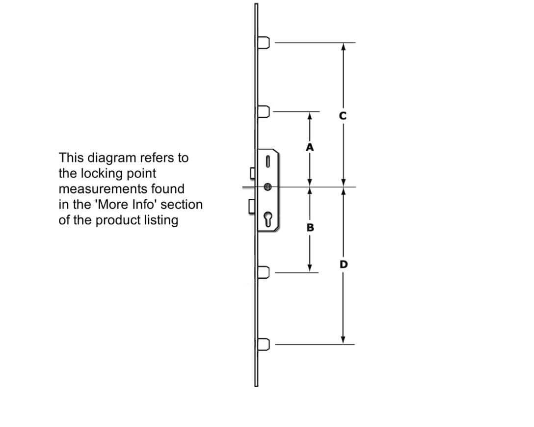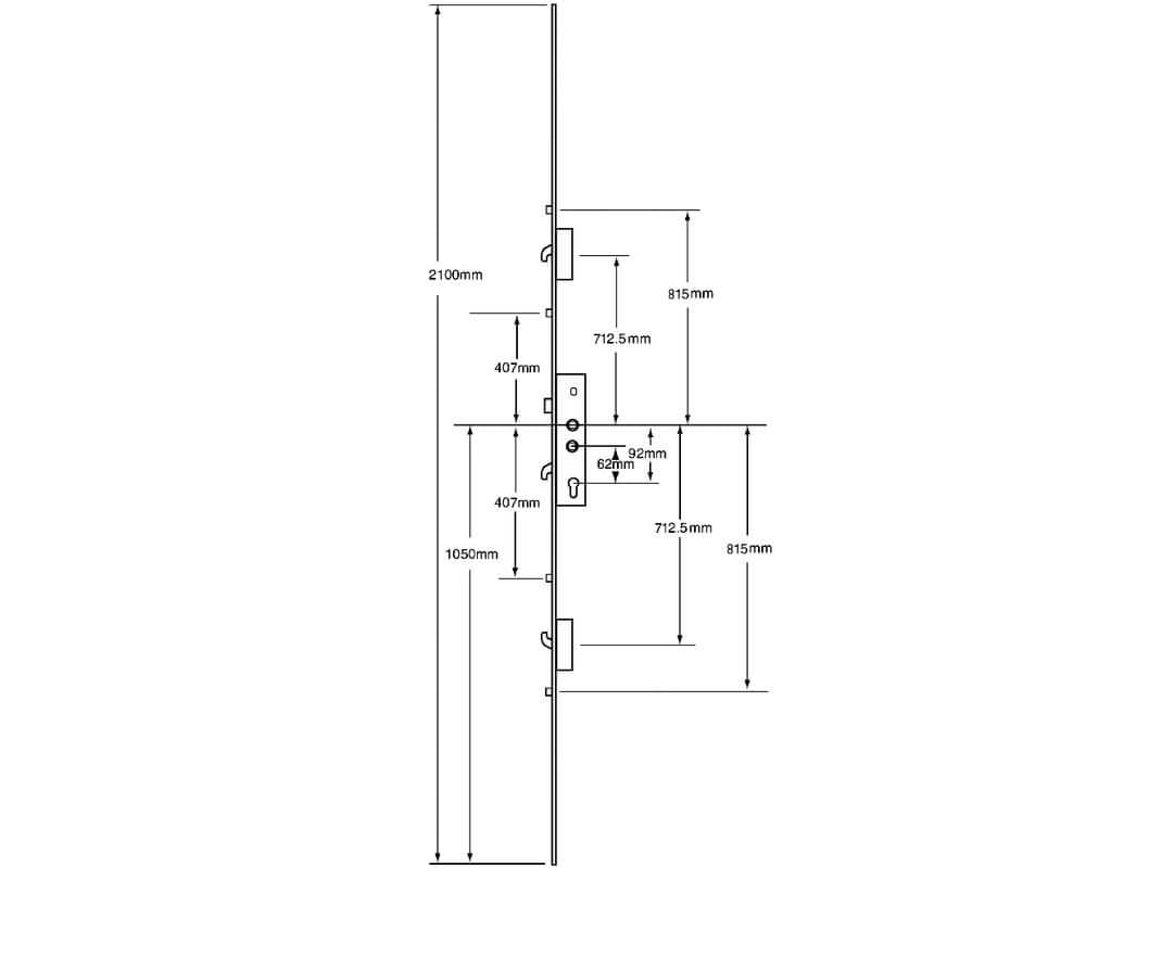 This SAFEWARE Lever Operated Latch & Hookbolt is a full multipoint lock unit with 2 hooks and 4 rollers. It features a Euro profile centre case with a 16mm faceplate and twin spindle. The unit can be locked by using the lift lever to engage the locking mechanisms, after which a turn of the full cylinder locks it up. One full turn of the key followed by a push down on the lever unlocks the unit.